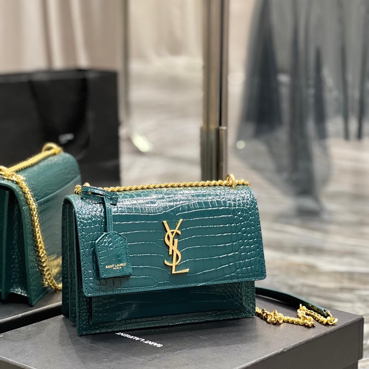 SUNSET MEDIUM CHAIN BAG IN CROCODILE EMBOSSED SHINY LEATHER