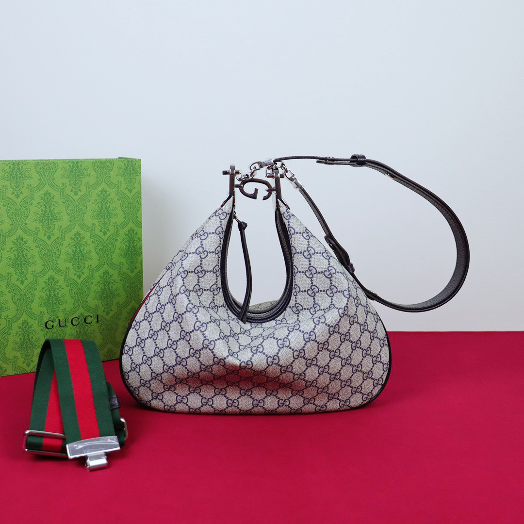 G*u*i ATTACHE MEDIUM SHOULDER BAG BEIGE BLUE 13.8″W x 12.6″H x 2.4″D